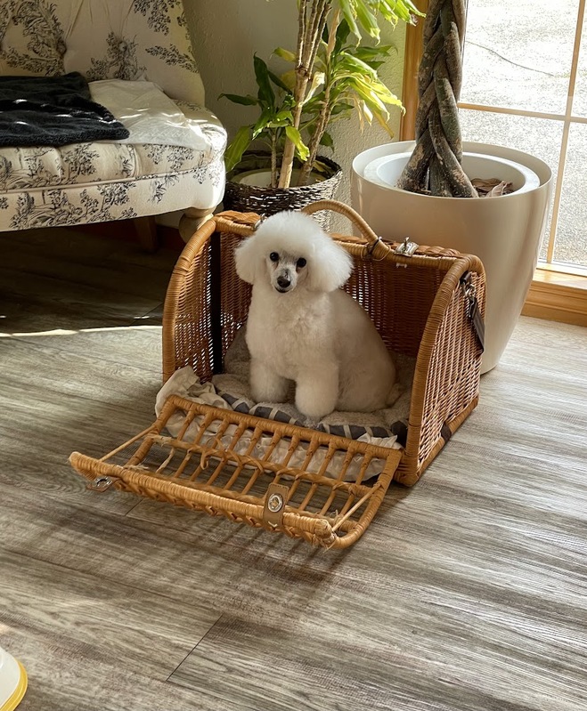 リリーちゃん♡ シャンプーコースで来てくれました(^^♪ 可愛いキャリーバッグで お似合いですね♡ フワフワになりました✨ いつもありがとうね♡