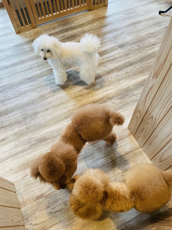 ひらりちゃん♡こはるちゃん♡ お母さんのお迎えを2頭で 喜んでいました✨ ミネラルパックでふわふわに仕上がりました(^^♪ いつもありがとうね♡