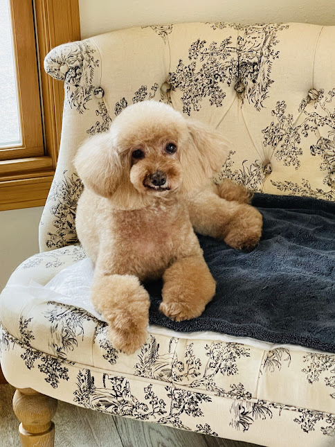 アルマくん♪ 頑張ってトリミングできたね(^^♪ お顔のカット中ウトウトしていました♡ スッキリ可愛く仕上がりました✨ いつもありがとうね♡